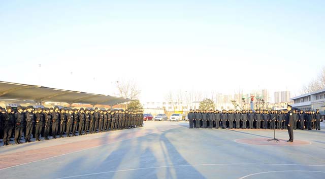 2月19日(大年初一)早晨7時(shí)30分,淮安市副市長、市公安局局長宮文飛和市局黨委副書記、副局長初曉、副局長唐衛(wèi)東、指揮中心主任鮑鶴兵等領(lǐng)導(dǎo)來到總公司,在公司總經(jīng)理婁伯翱、副總經(jīng)理王克、徐文剛陪同下,親切慰問了整裝待發(fā)的武裝押運(yùn)隊(duì)員和公司副中隊(duì)長以上管理人員。