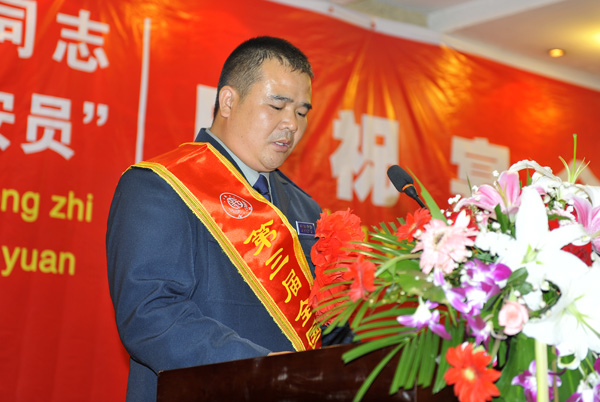 2011年9月29日晚,總公司在天地緣大酒店隆重舉行“萬成明同志榮獲第三屆全國先進保安員稱號慶祝宴會”。宴會之前,王克副總經理宣讀了總公司對萬成明同志的表彰決定,徐文剛副總經理為萬成明同志頒發了獎金,同時,萬成明發表了獲獎感言。