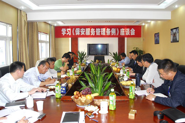日下午,省廳治安局和淮安市公安局治安支隊在總公司會議室召開“學習《保安服務管理條例》座談會”,總公司和淮陰、楚州、洪澤、金湖、盱眙等縣區保安服務公司經理和部門負責人