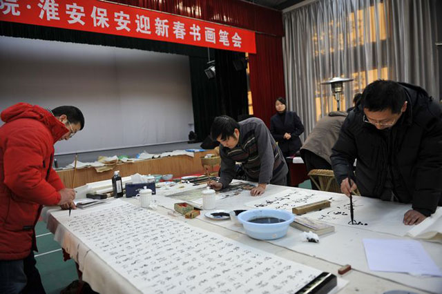 為表達書畫藝術界人士對保安隊伍的關愛,元月16日,淮安書畫院書畫家走進市保安公司進行新春慰問,書畫家們揮毫潑墨,作品寓意深刻,彰顯了保安文化特色,為保安員工奉獻了一份藝術大餐。