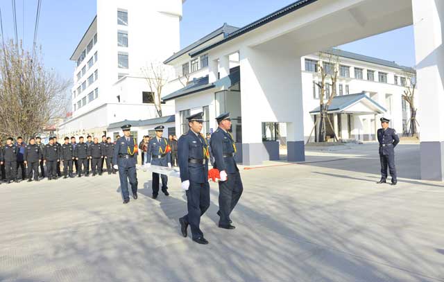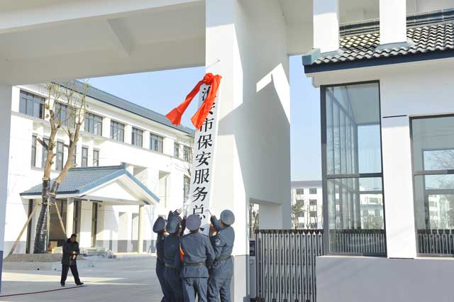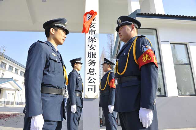 雖然室外氣溫格外寒冷,但這里卻充滿了春天的氣息。上午9時50分,4名禮儀保安抬著一塊披著紅綢的標牌, 邁著整齊的步伐走向公司大門,9時58分,江蘇省淮安市保安服務總公司標牌緩緩地、平穩地掛了起來,現場響起陣陣鞭炮聲和熱烈的掌聲,大家共同為總公司新址掛牌而歡欣鼓舞。