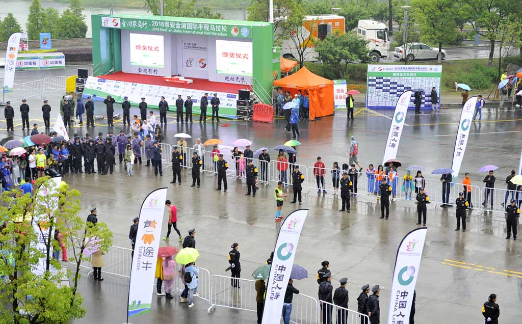 由中國田徑協會、江蘇省體育局、淮安市人民政府聯合主辦,金湖縣人民政府、淮安市體育局、江蘇省體育產業集團承辦的“2016淮安金湖國際半程馬拉松”比賽,于2016年5月15日上午8:30分在金湖縣荷花廣場鳴槍開賽,來自世界各地及我國長跑愛好者10000余名運動員參加了比賽。淮安市保安服務總公司派出700余名安保人員冒雨執勤,提升了保安隊伍在復雜天氣條件下的快速反應和安保執勤的能力。