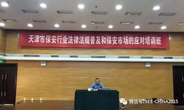 上午9:30,培訓正式開始,首先是天津市公安局保安業監管處俞江副處長主講《企業提升發展及保安市場的應對》。俞江副處長為與會人員講解了天津市保安服務業現狀以及我市保安服務行業存在的十大問題:一、公司數量激增,市場競爭愈發激烈;二、外埠公司涌入,市場份額受到侵占;三、經濟形勢下滑,保安市場縮水嚴重;四、稅費改革實行,公司負擔日趨嚴重;五、低價競爭嚴峻,企業運營進退兩難;六、服務方式單一、企業發展動力不足;七、管理手段缺乏,保安服務參差不齊;八、技能培訓不足,保安素質需要加強;九、保安流動性大,隊伍穩定難題待解;十、保安來源不一,整體形象有待提高。根據我市保安服務行業存在的以上問題,俞江副處長給予了應對措施,指明了保安服務行業發展的方向:一是,依法依規開展保安服務經營活動;二是,拓寬保安服務渠道從單一人力向科技轉換;三是,保安服務企業要立足本市邁向全國走向海外;四是,保安服務企業要依法經營內強素質外樹形象。并要求各保安服務企業要做到:嚴格遵守國家有關保安監管、勞動就業、稅收、社會保險、政府采購、招投標等法律法規,堅決依法依規開展保安服務活動;確保在國家規定的經營范圍內開展保安服務活動;嚴格遵循保安員全員持證上崗,特殊技能崗位工作的保安員必須經專業培訓持證上崗;加強對各級管理崗位以及全體保安員的教育、管理和培訓,提升管理能力和服務水平,用優質服務占領市場;不斷加強器材、裝備、服裝以及科技等方面的投入,用良好的形象展示新時代保安服務行業的形象。