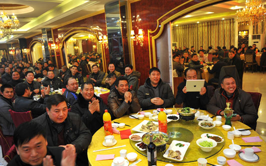 19:18分,晚宴準(zhǔn)時(shí)開(kāi)始!首先是在公司工作了20幾年的財(cái)務(wù)部李萬(wàn)晴和消防分公司周鵬上臺(tái)講述了自己二十幾年的保安情。講述了曾經(jīng)公司由一窮二白經(jīng)過(guò)努力到今天多元化的發(fā)展。緊接著是曾經(jīng)在公司工作過(guò)但現(xiàn)在離開(kāi)的趙長(zhǎng)林講述了自己從工作到離開(kāi)和淮安保安一段難忘的經(jīng)歷。后來(lái),黨委副書(shū)記吳淮甫、副總經(jīng)理王克分別上臺(tái)講話。最后婁總上臺(tái)發(fā)表了熱情洋溢的致辭,感染了在場(chǎng)的每一名員工。婁總對(duì)淮安保安未來(lái)的發(fā)展充滿信心,也表達(dá)了堅(jiān)定的決心。