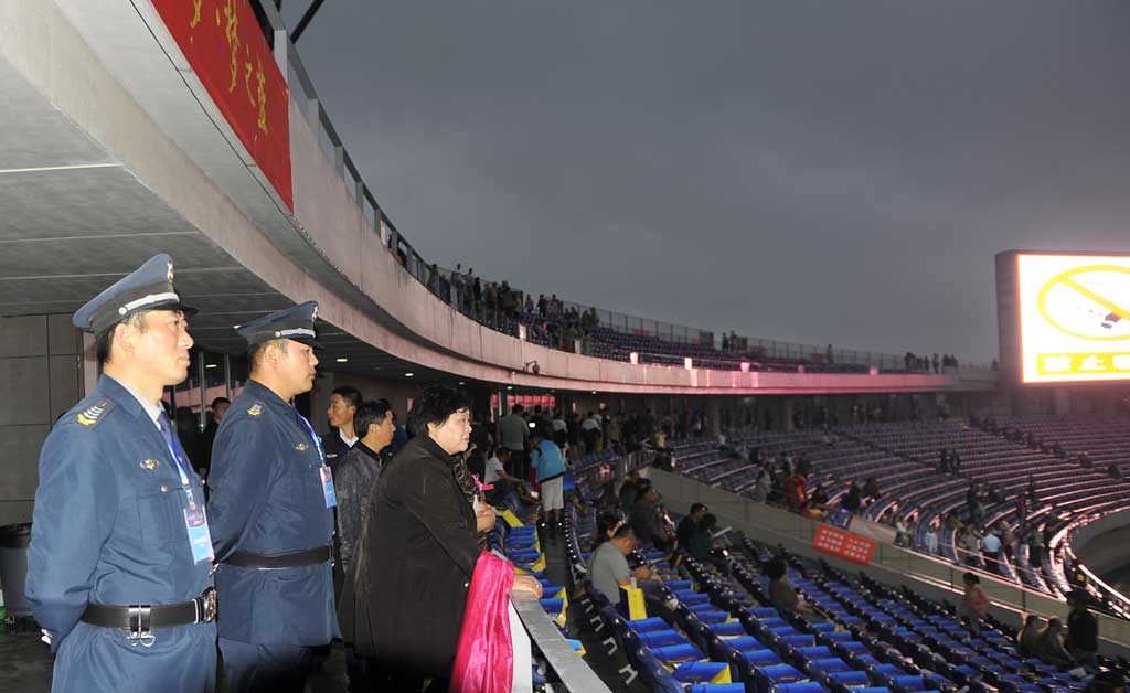 “1號(hào)點(diǎn)到位、2號(hào)點(diǎn)到位、3號(hào)點(diǎn)到位······”,根據(jù)指揮部的統(tǒng)一部署,從5月2日14:00開(kāi)始,參加執(zhí)勤的第一批人防保安員700余人到達(dá)指定地點(diǎn)集結(jié),16:00所有人員全部進(jìn)入預(yù)定崗位開(kāi)展工作,晚會(huì)雖然只有短短的三小時(shí)時(shí)間,但保安人員一直至深夜24:00全才陸續(xù)結(jié)束任務(wù),安全歸隊(duì)。特別在17:00開(kāi)始檢票至19:30演出這段時(shí)間,天降大雨,雨水淋了外衣,汗水濕透襯衣,但所有執(zhí)勤人員沒(méi)有因?yàn)榇笥甓x開(kāi)崗位,他們?nèi)繄?jiān)守崗位,認(rèn)真履職,確保觀眾安全有序進(jìn)場(chǎng)。