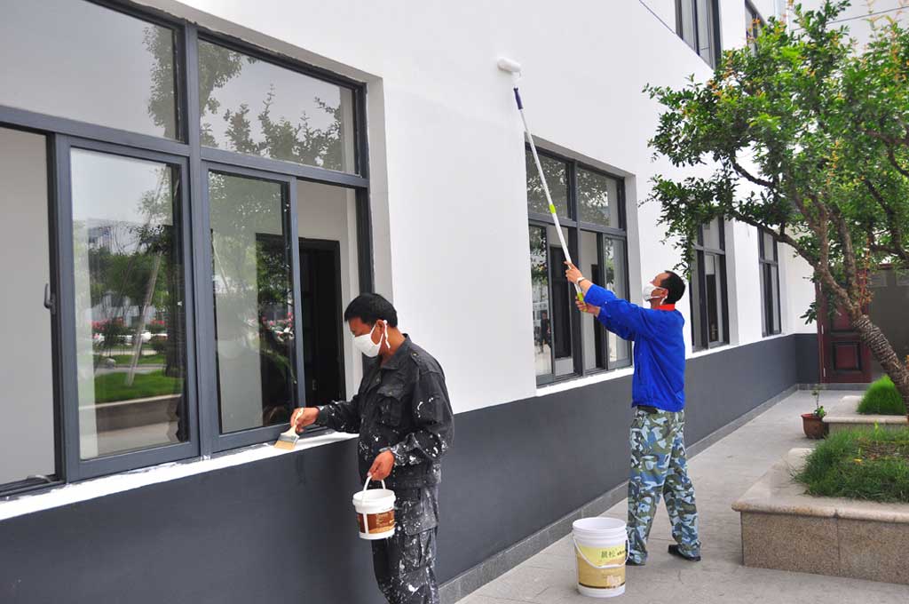 由于時間緊、工程量大、任務重,為了提前完工,他們在保證工程質量的前提下,放棄了一切休息時間,不顧天氣炎熱,加班加點,全身心投入到地板油漆的粉刷、押運樓墻面修繕和粉刷之中。