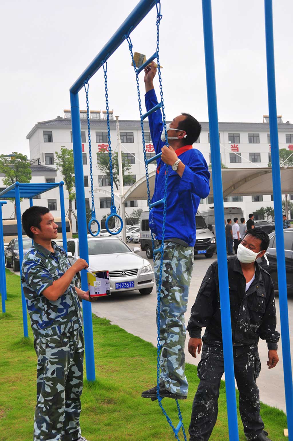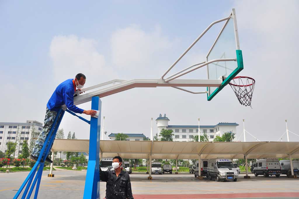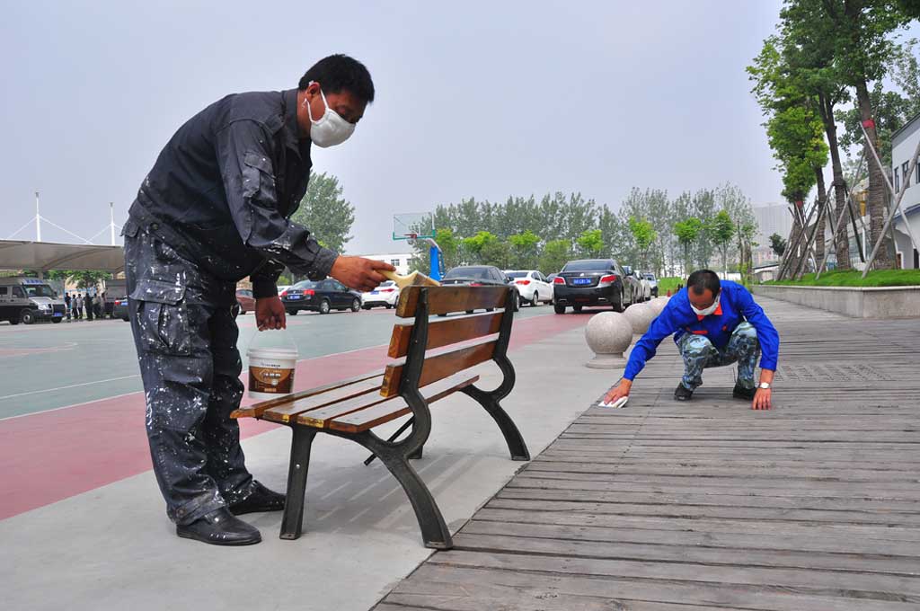 接到任務后,趙炳華、丁云清2名同志首先對所有施工現場進行了察看和預算,并制定了施工方案。基于押運樓是在老平房的基礎上翻新加層建筑,使得部分房間墻面脫落并出現裂縫,樓體墻面防水層破損,每逢下雨天便有雨水不同程度的滲漏,影響了辦公和生活秩序,加上公司院內籃球架、單雙杠器材、木椅、木橋、樓前防護木等褪色和部分損壞的情況,以及剛建好的綜合活動中心二樓1100多平方米木質地板需要進行漆化處理。面對如此工程,趙炳華、丁云清2名同志迅速作出合理安排和應對措施,開始著手對樓體做好防水處理,同時將1至5層樓的隊員宿舍、辦公室、更衣室等所有房間1000多平方米的墻面進行打磨粉刷,并對公司剛建好的活動中心二樓1100多平方地面進行多次漆化處理,以及房屋里外設施進行了修繕。