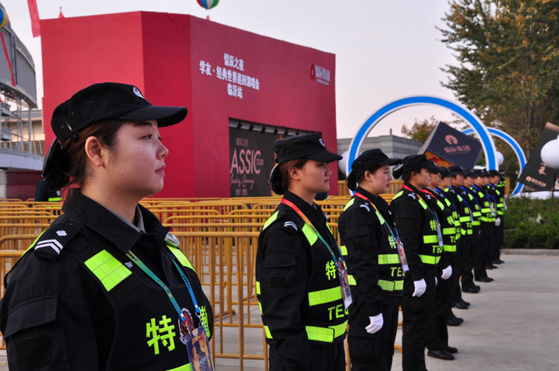 為做好安保工作,11月2日上午,人防中心專門組織參加臨沂安保人員進行專項培訓。3日上午7:00集合出發,提前到達臨沂大學,按照承辦方要求,現場搭建300米防爆墻,10個預檢票口通道,承擔了25000名觀眾入場的安檢、檢票通道的秩序維護等安保任務。