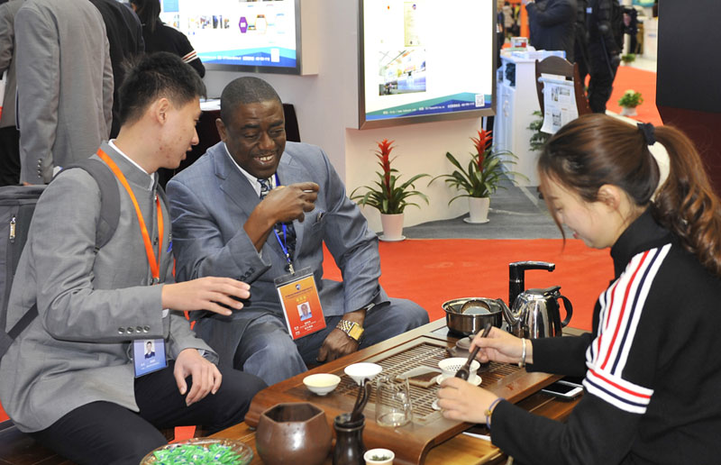 婁伯翱總經(jīng)理在公司展臺向國外嘉賓介紹海外服務情況