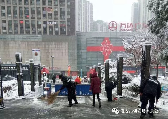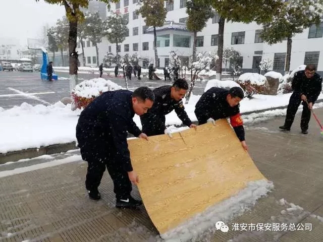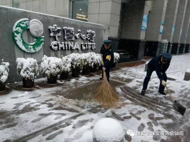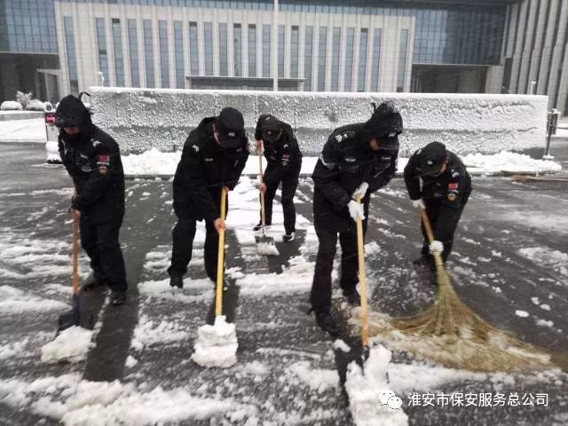 然而,雪景甚美,卻為出行的行人們帶來(lái)了嚴(yán)寒和積雪成冰的出行困難。淮安市保安服務(wù)總公司的保安們,考慮到種種問(wèn)題,不畏嚴(yán)寒,在夜間按時(shí)出車(chē)執(zhí)勤,天不亮就拿起掃雪工具,積極主動(dòng)清掃客戶(hù)單位門(mén)前、院內(nèi)積雪。積雪松的地方用推雪板推,積雪壓實(shí)的地方就用鐵鍬一點(diǎn)點(diǎn)的鏟除,執(zhí)勤崗點(diǎn)上的保安們呈現(xiàn)出一派火熱的鏟雪場(chǎng)景,讓城市煥發(fā)潔凈的光彩。