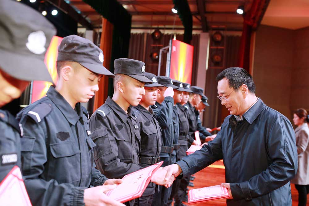 4月4日下午,總公司在活動(dòng)中心召開(kāi)了2018年保安班學(xué)習(xí)實(shí)習(xí)交流會(huì)。總公司總經(jīng)理婁伯翱、副總經(jīng)理王克、押運(yùn)中心總監(jiān)侯秀濱、人防中心總監(jiān)王錦春、人力資源中心總監(jiān)陳峻峰等相關(guān)部門(mén)負(fù)責(zé)人和保安班的170名學(xué)生以及家長(zhǎng)參加了會(huì)議。