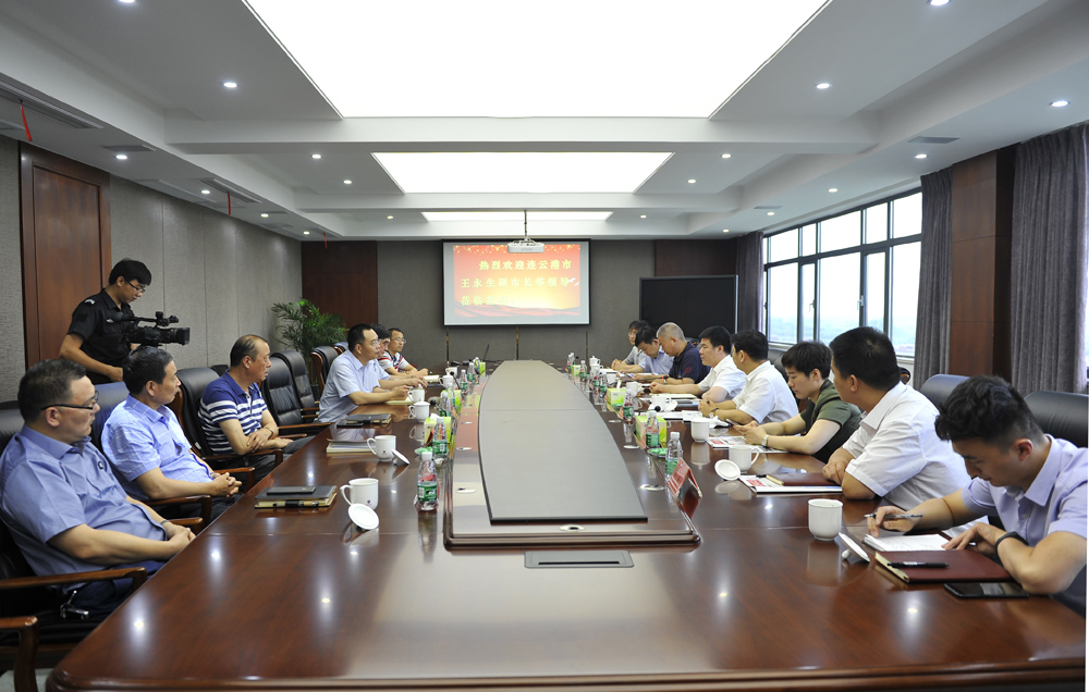 2018年7月8日,連云港市副市長、公安局長王永生、北京威遠保安公司總經理李濤、連云港市保安公司總經理林松、云之約安全服務總經理陳飛霏等領導一行7人蒞臨總公司考察交流,總公司總經理婁伯翱、書記吳淮甫帶領人防中心、押運中心、技防公司、科技公司等部門負責人參與座談交流。