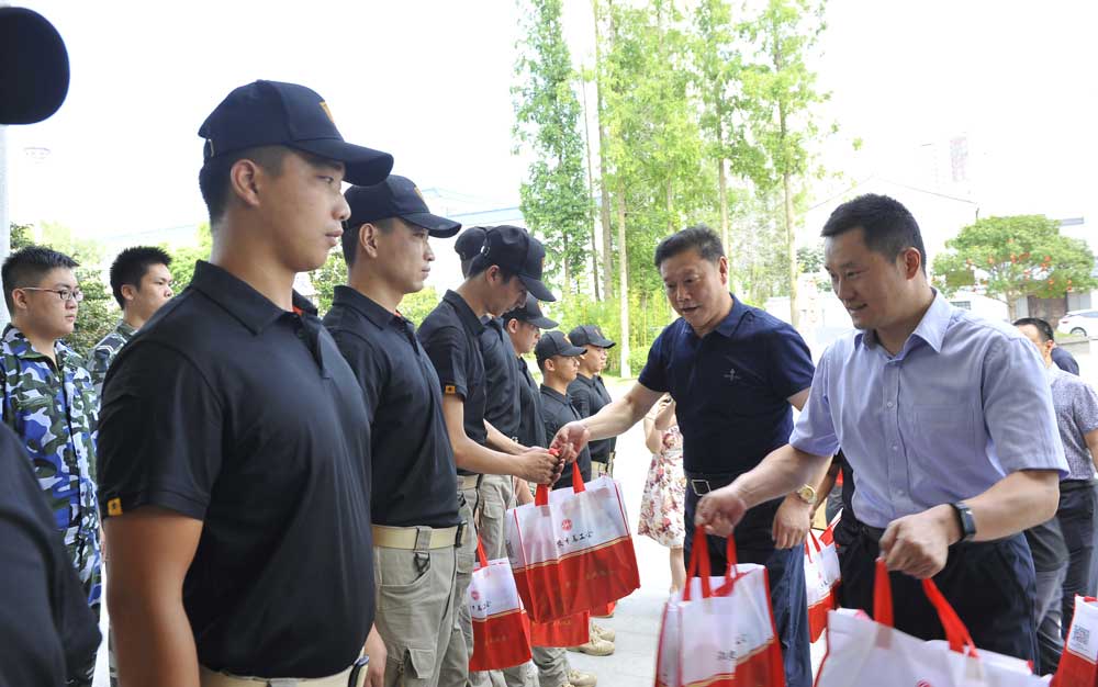 8月8日下午,淮安市總工會(huì)和市公安局工會(huì)等領(lǐng)導(dǎo)一行來到總公司,在公司婁伯翱總經(jīng)理陪同下,親切看望和慰問了正在訓(xùn)練中的押運(yùn)新隊(duì)員和犬防大隊(duì)、安保中專班等員工,并將防暑物品送到他們手中,表達(dá)對(duì)奮戰(zhàn)在安保一線的保安隊(duì)伍的敬意,并勉勵(lì)大家立足本職,再接再厲,進(jìn)一步為淮安經(jīng)濟(jì)建設(shè)保駕護(hù)航。