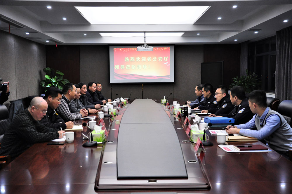 1月21日,江蘇省公安廳治安總隊保安監管科科長王昕、省保安協會辦公室李宇航一行蒞臨總公司,調研江蘇省保安協會第三屆理事會第三次會員代表大會會議精神貫徹落實情況,淮安市公安局治安支隊政委顏志龍、監管大隊長呂述山陪同調研。總公司總經理婁伯翱、副總經理王克、徐文剛和行政中心、人力資源中心、人防中心、押運中心和技防分公司等部門負責人參與座談交流。