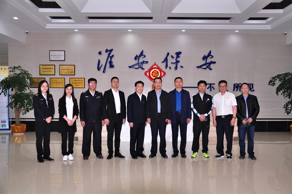 竇開宏董事長一行在婁伯翱董事長陪同下,參觀了總公司活動中心、押運中心、警犬基地、無人機、智慧淮安技防展示中心和視頻監控指揮中心等場所;觀看了公司宣傳片和“雪亮工程”建設視頻短片,觀摩了居民小區視頻聯網項目,針對保安公司開展技術防范和海外派駐保安業務情況進行了交流。