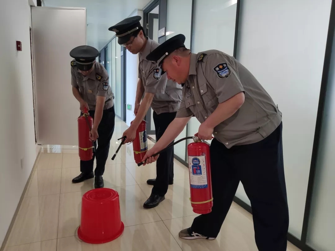 下午15點45分,演練正式開始。消防監控室發現火情,通知巡邏組到達現場,經確認后立刻報告江蘇銀行行保部總經理王馳,總經理王馳宣布啟動消防應急預案,即刻撥打火警119,同時組織現場安保人員撲滅控制初期火災,引導大樓內部人員有序疏散,確認現場有無人員受傷,并拉起隔離警戒線拒絕無關人員再次進入,等待消防部門調查結果。整個過程中,保安員們井然有序的實施滅火措施,圓滿的完成了此次應急演練。江蘇銀行領導對人防管理中心保安隊員處理應急事件的專業能力,冷靜態度給予了高度的贊揚。